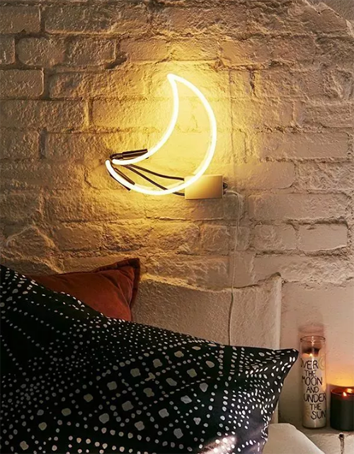 如果你對霓虹燈的印象還停留在酒吧和商業(yè)街,那端端可真是要?dú)獾椒籽哿恕T煨投嘧兊哪藓鐭舨粌H能做臥室空間的氛圍照明,還能替代裝飾畫做床頭區(qū)的主要裝飾。