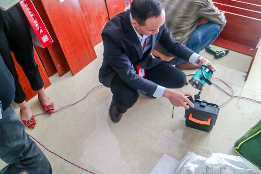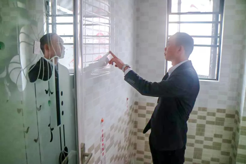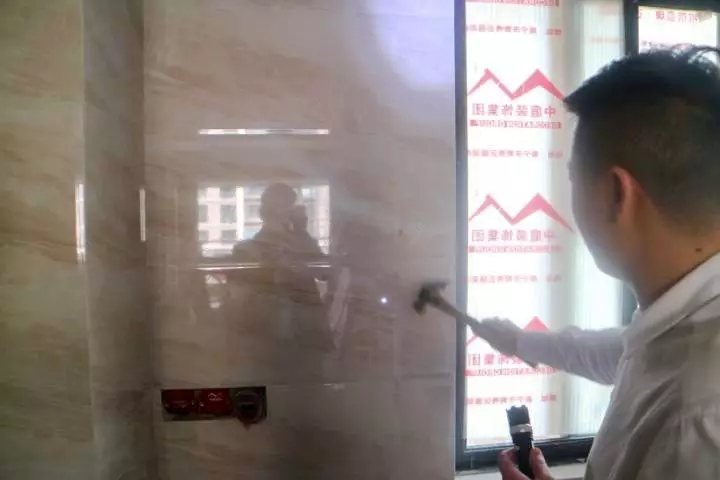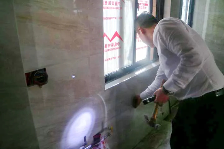 丁總細(xì)心的檢驗(yàn)鋪磚工藝,親自砸掉沒有按標(biāo)準(zhǔn)施工的瓷磚,責(zé)令整改。