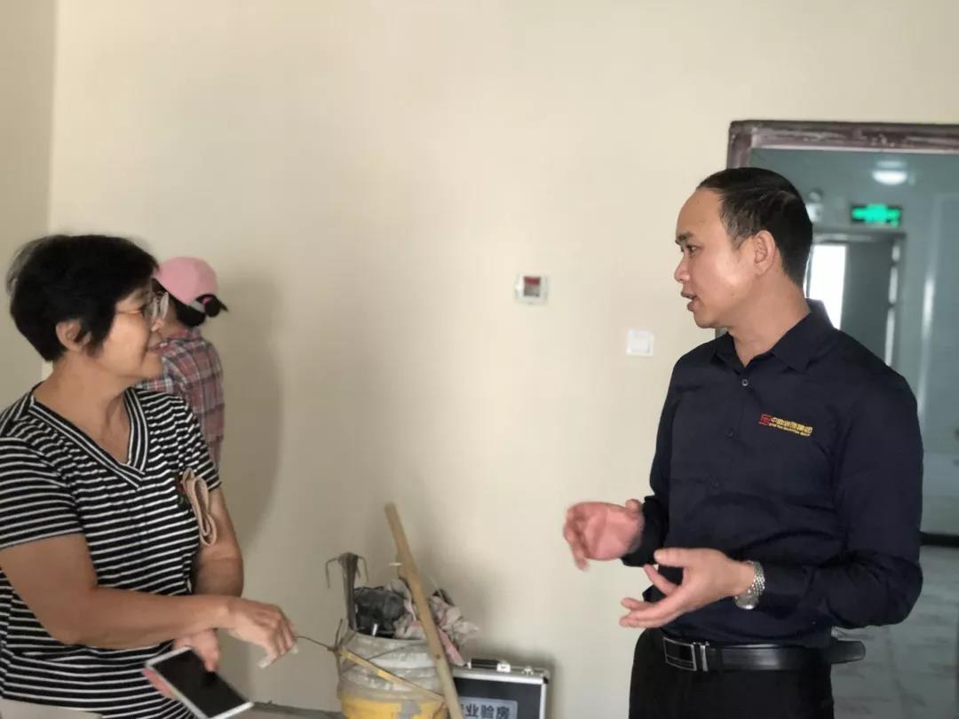 ▲吳總現(xiàn)場和業(yè)主了解裝修滿意度,業(yè)主表示非常滿意