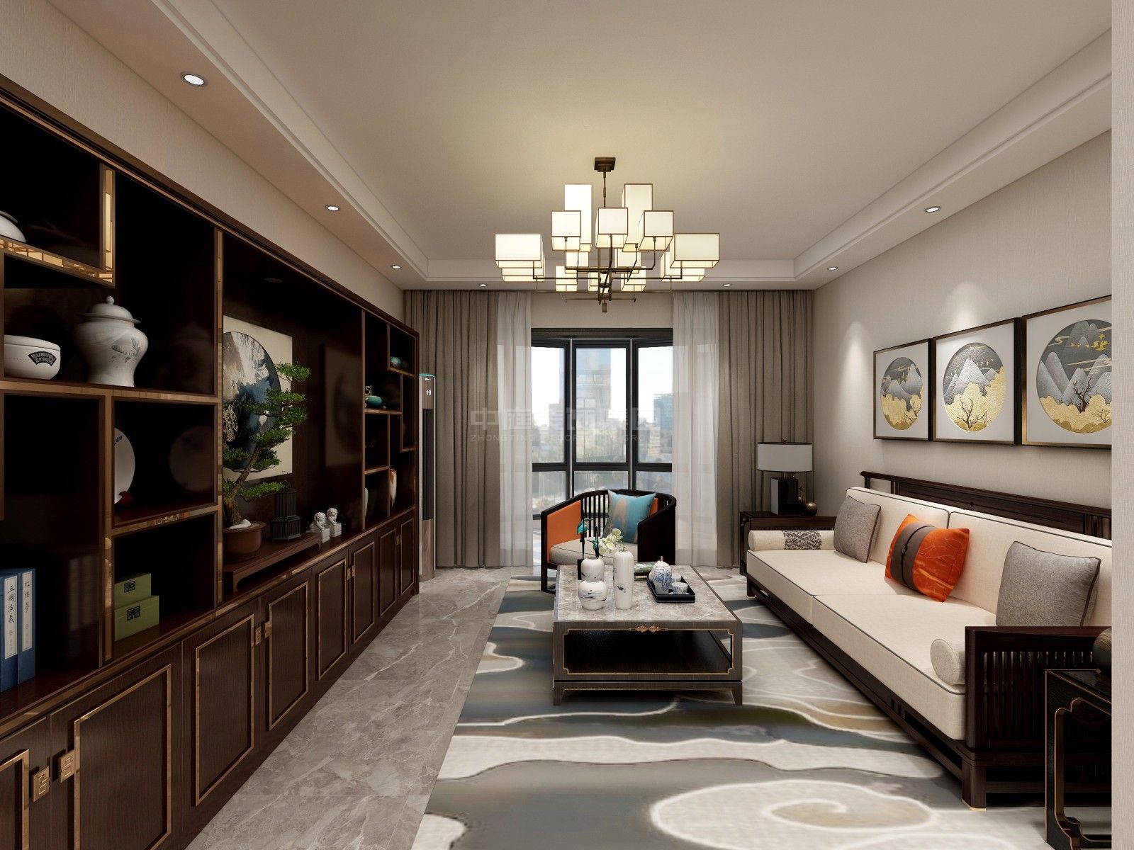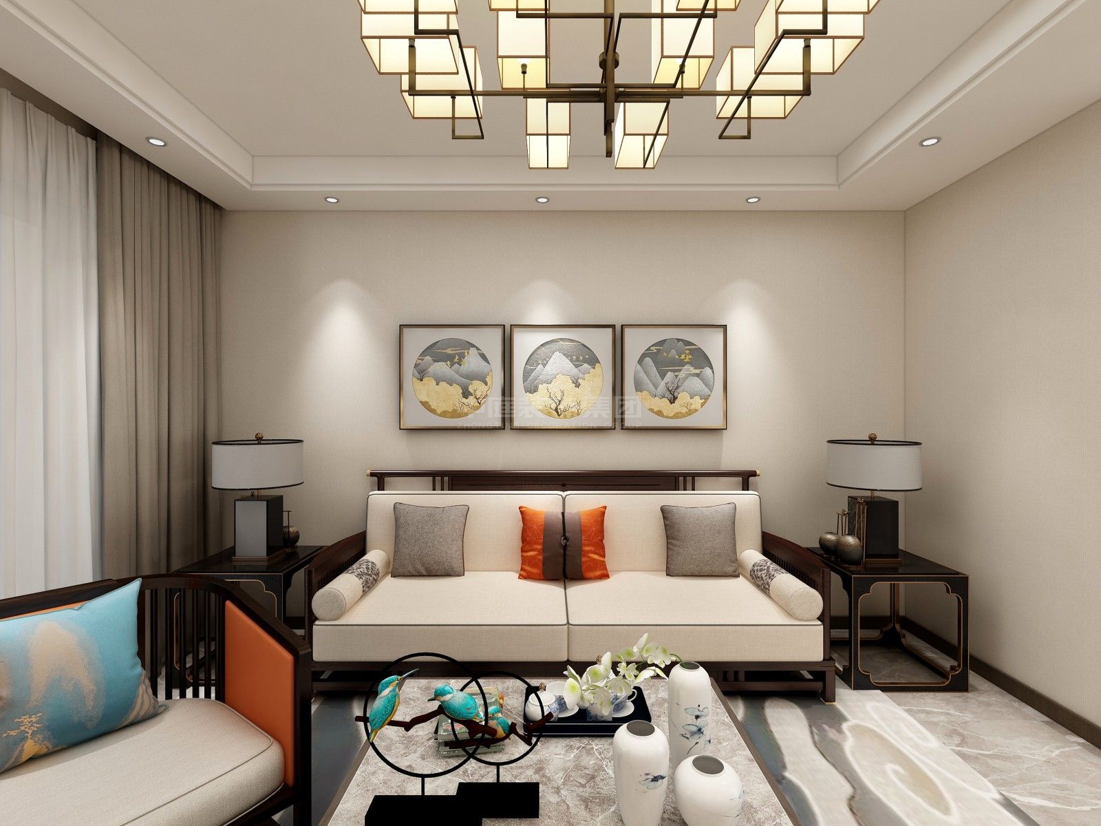 施工面積:120-150㎡| 設(shè)計(jì)風(fēng)格:新中式風(fēng)格
