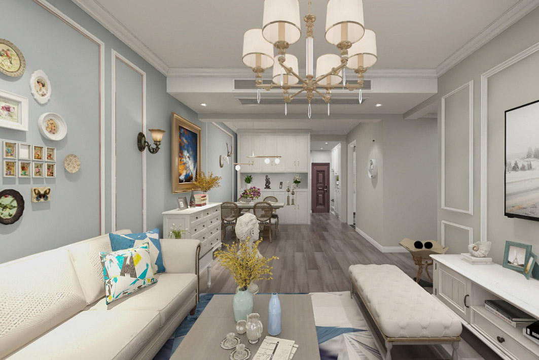 本案為3房2廳2衛(wèi),總面積106㎡。設計師以現(xiàn)代時尚感搭配美式風格,用優(yōu)秀的設計和合理科學的布局打動了客戶?,F(xiàn)代美式糅合了歐式的復古優(yōu)雅與北歐的簡潔清新,獨有一種浪漫情調,給業(yè)主自由休閑的居住環(huán)境。