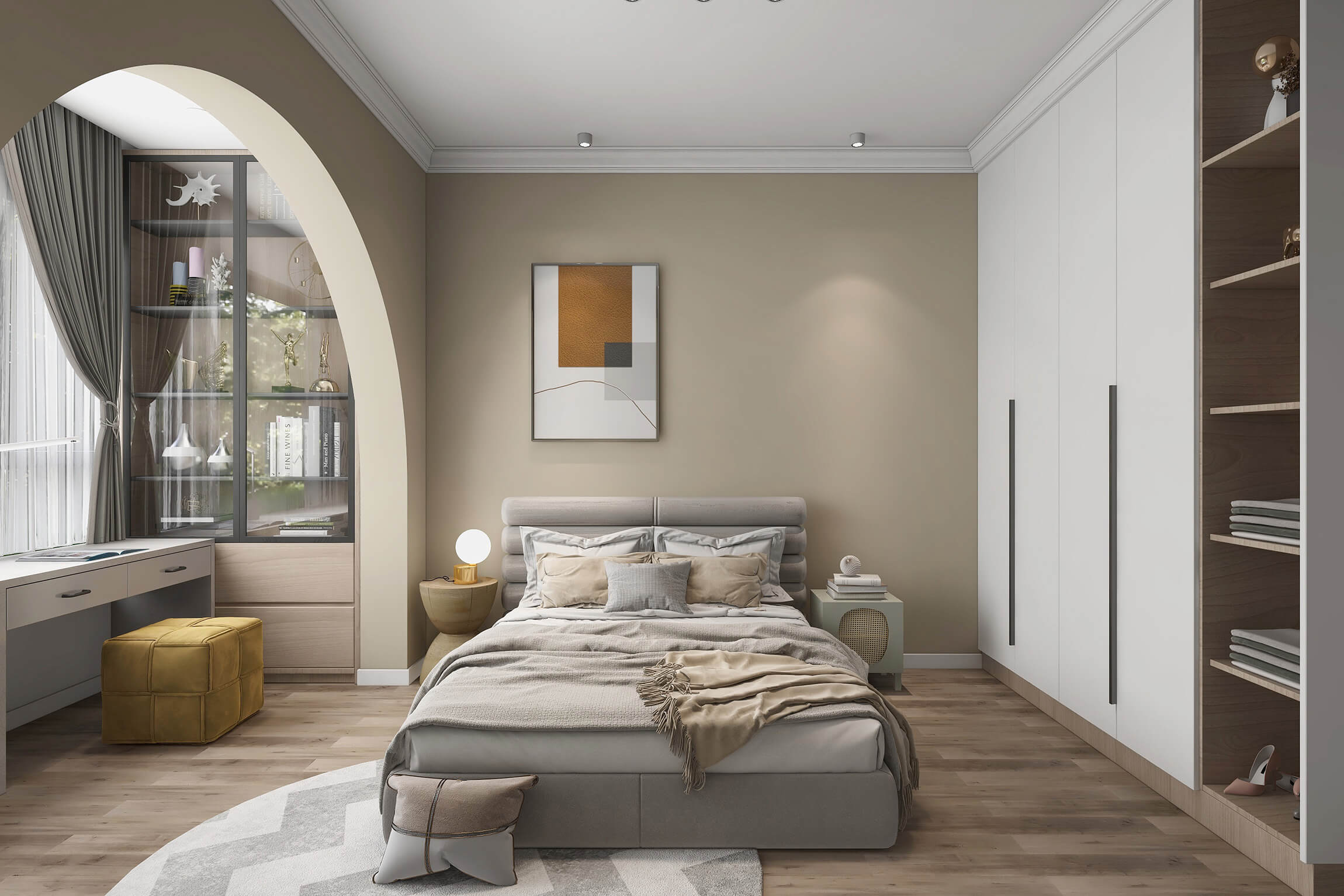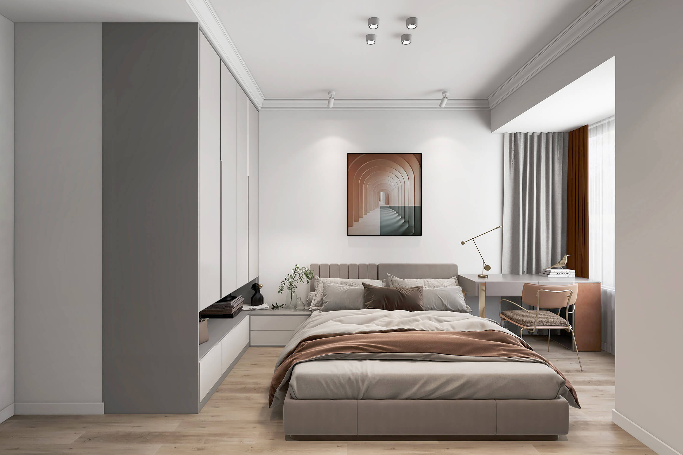 本案戶型為:4房2廳2衛(wèi),總面積143㎡。奢在格調上,雅在細節(jié)里,本案以光影與質感的結合,通過一些軟裝元素來凸顯精致,構建優(yōu)雅有格調的居住環(huán)境。