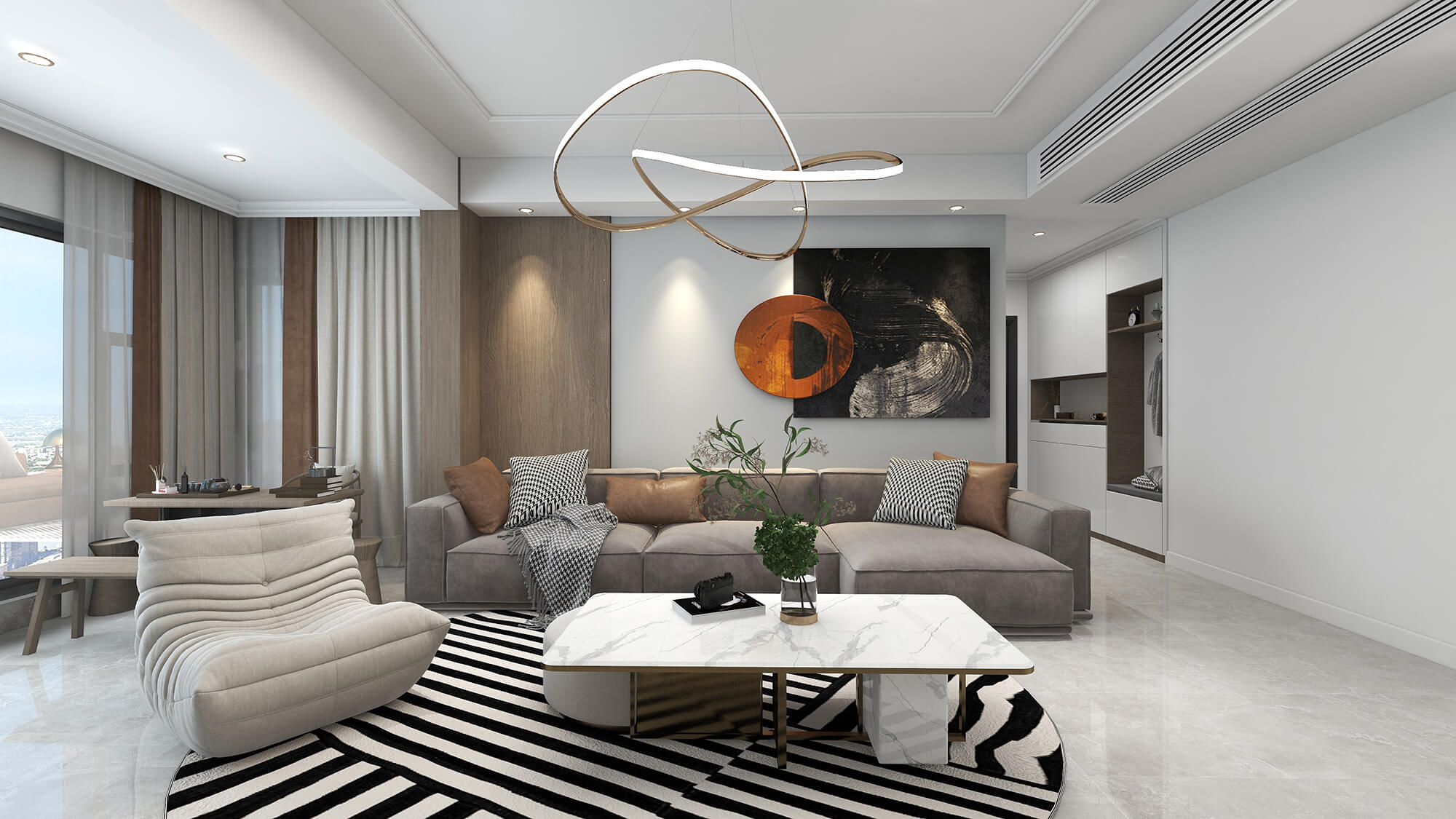 本案為125㎡的現(xiàn)代輕奢風(fēng)格案例。軟裝設(shè)計(jì)區(qū)別于硬裝創(chuàng)造出的理性視角,以藝術(shù)化的主題色遵循空間初衷,從時(shí)尚空間中汲取靈感,捕捉流動(dòng)的想象,營造自由夢境的層次感和深邃感,帶來品位生活的沉浸體驗(yàn)。