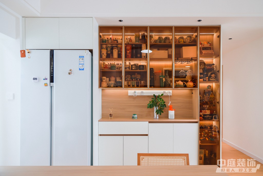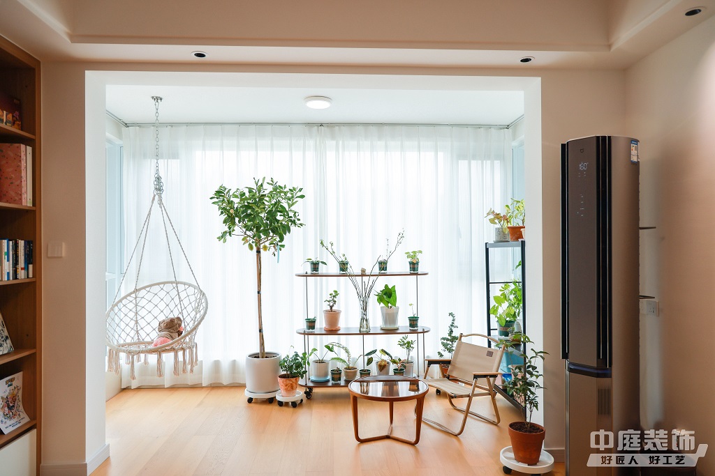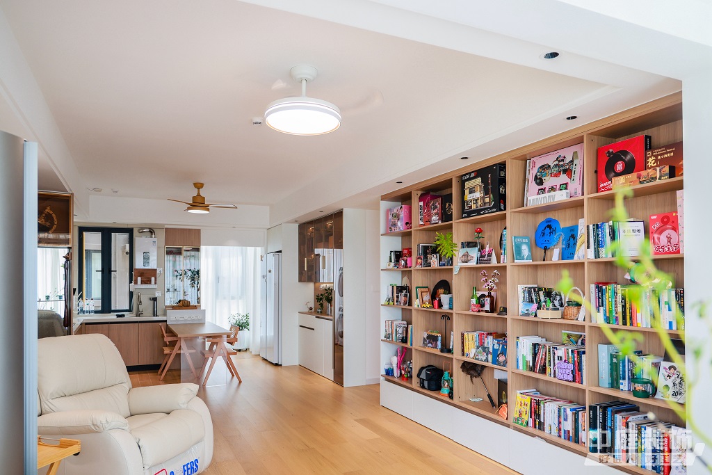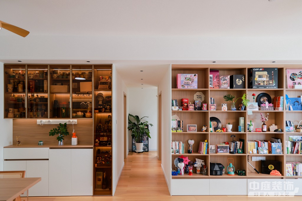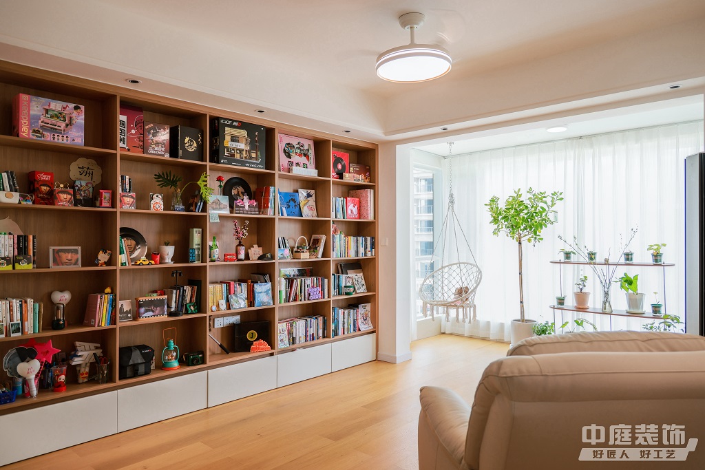 瀏覽量:883仿佛步入了一個自然與簡約交織的溫馨空間。淺色調(diào)的木質(zhì)地板營造出一種質(zhì)樸而不失高雅的氛圍??蛷d中央,去客廳化的設(shè)計,一排原木色到頂書架擺滿精心挑選的物件和書籍,一進(jìn)門就能感受家的溫暖。