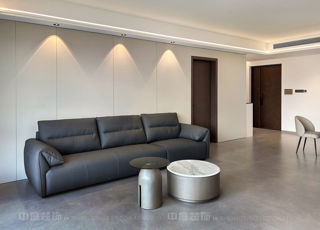 瀏覽量:108客廳電視背景墻的山水畫(huà)面,既具現(xiàn)代設(shè)計(jì)的視覺(jué)沖擊力,又蘊(yùn)含傳統(tǒng)山水意境。材質(zhì)上選用簡(jiǎn)約的板材、大理石與金屬元素,搭配簡(jiǎn)潔的家具造型,呈現(xiàn)出低調(diào)的奢華感。燈光設(shè)計(jì)以線性燈和嵌入式燈具為主,通過(guò)柔和的光影強(qiáng)化空間層次。同時(shí),在簡(jiǎn)約的布局中融入對(duì)生活細(xì)節(jié)的考量,讓整個(gè)空間既符合現(xiàn)代都市人的審美需求,又傳遞出含蓄的東方美學(xué)意境,實(shí)現(xiàn)了功能性與藝術(shù)性的平衡,打造出舒適且富有格調(diào)的居住環(huán)境。