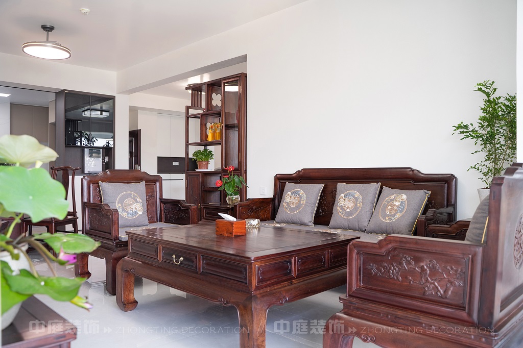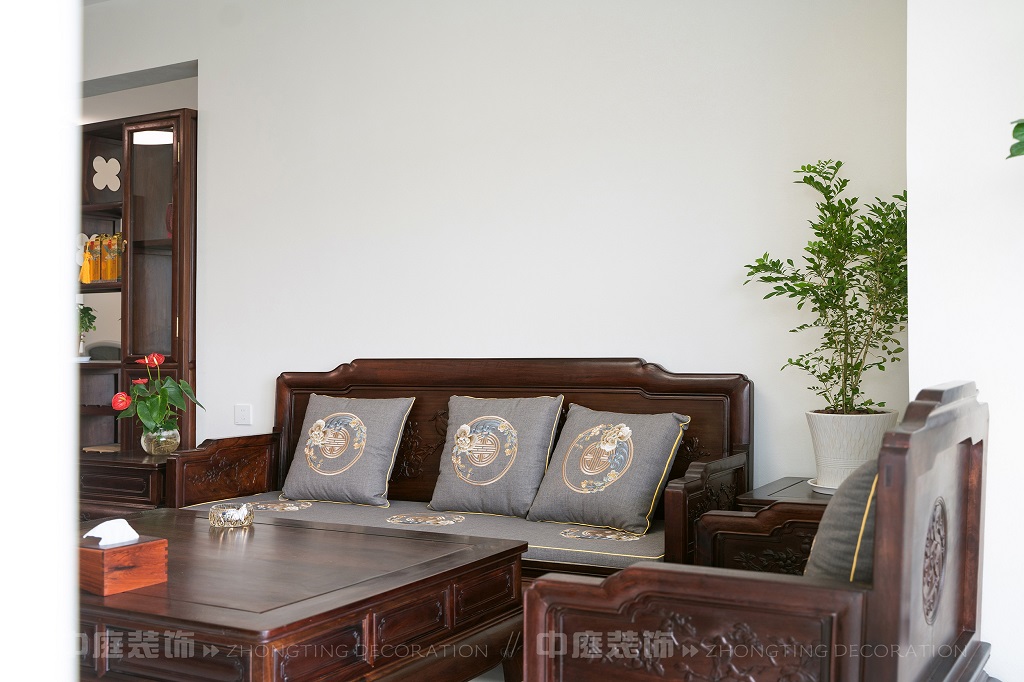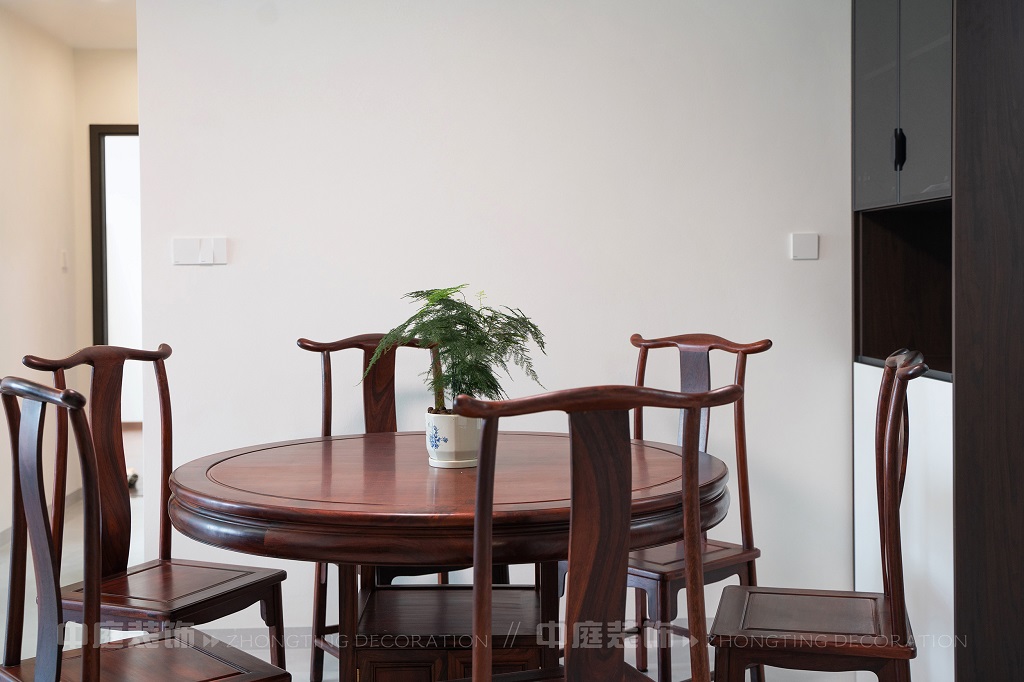 瀏覽量:138全屋以深色實木家具為主,雕花工藝精致細(xì)膩,盡顯中式家具的古樸質(zhì)感。搭配帶有傳統(tǒng)紋樣的抱枕,在細(xì)節(jié)處傳遞中式美學(xué)??臻g中綠植點綴其間,與木質(zhì)家具相得益彰,營造出自然清新的氛圍。無論是客廳的沙發(fā)組合,還是茶室的茶桌茶具,亦或是餐廳的圓桌設(shè)計,都在簡約的現(xiàn)代空間里,勾勒出中式家居的典雅與詩意。