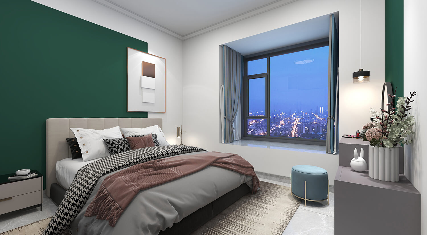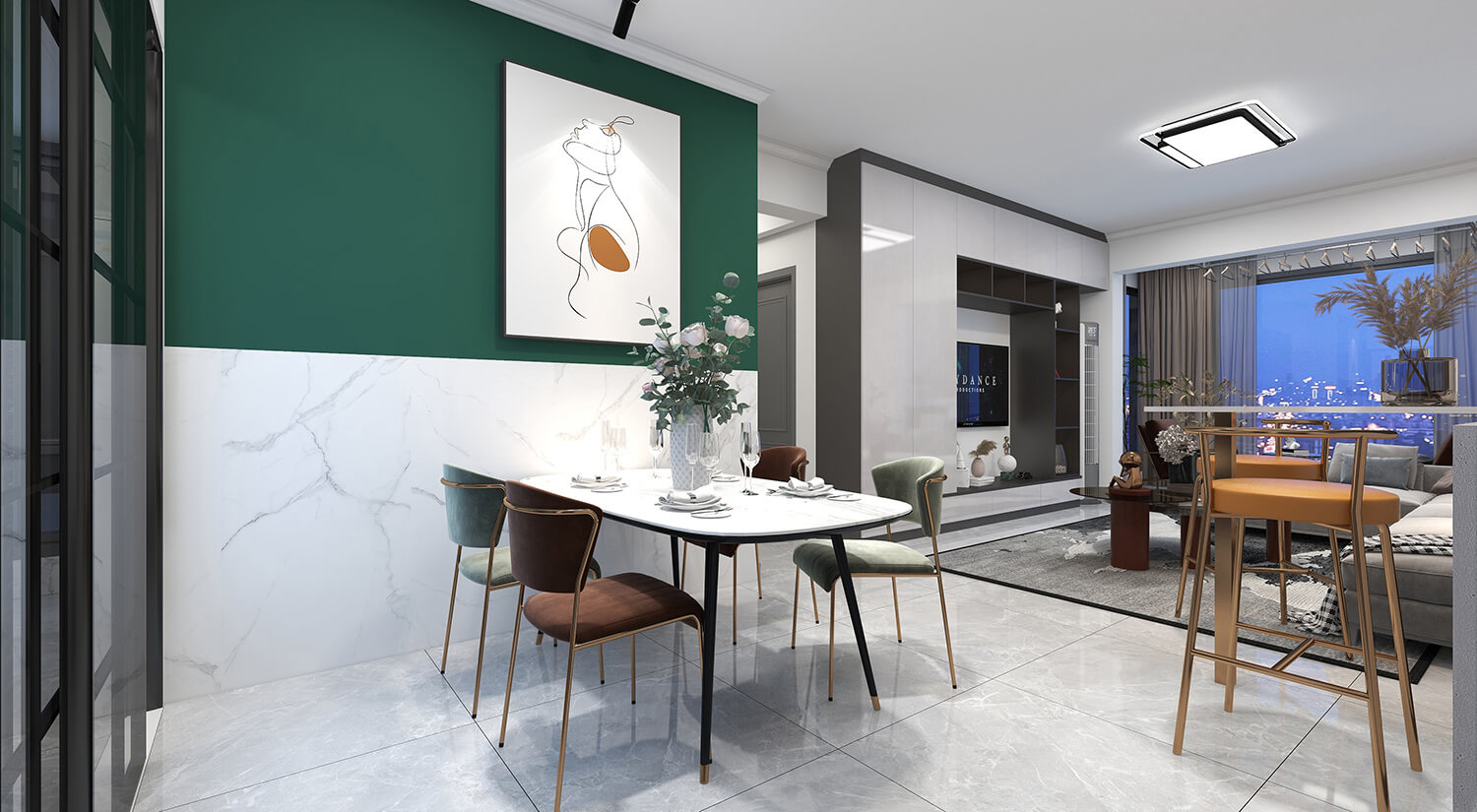 瀏覽量:321本案例戶型為:4房1廳2衛(wèi),總面積130㎡。墻壁、地板和天花板的顏色選擇明亮的白色,并搭配少量的深綠色作為點(diǎn)綴。在各種金屬質(zhì)感家具元素的襯托下,整體現(xiàn)代感十足。