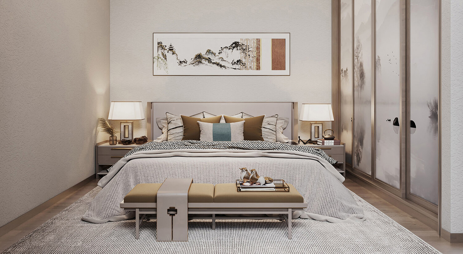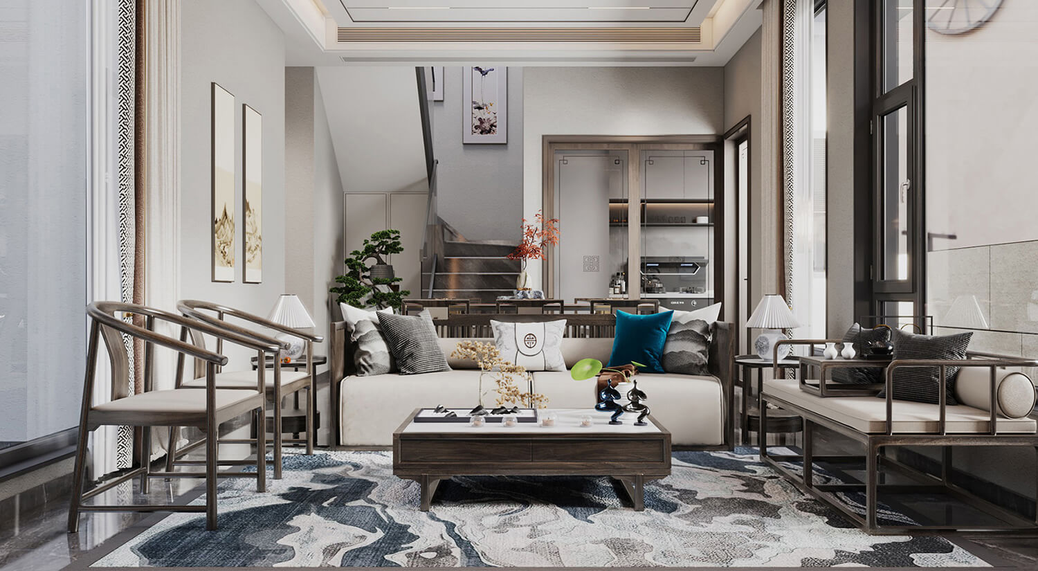 本案例戶型為:6房2廳3衛(wèi),總面積216㎡。這是一個新中式風格案例,新中式風格的設(shè)計手法強調(diào)傳統(tǒng)文化與現(xiàn)代設(shè)計的融合,注重空間布局和裝飾元素的平衡,打造出具有韻味和現(xiàn)代感的空間。