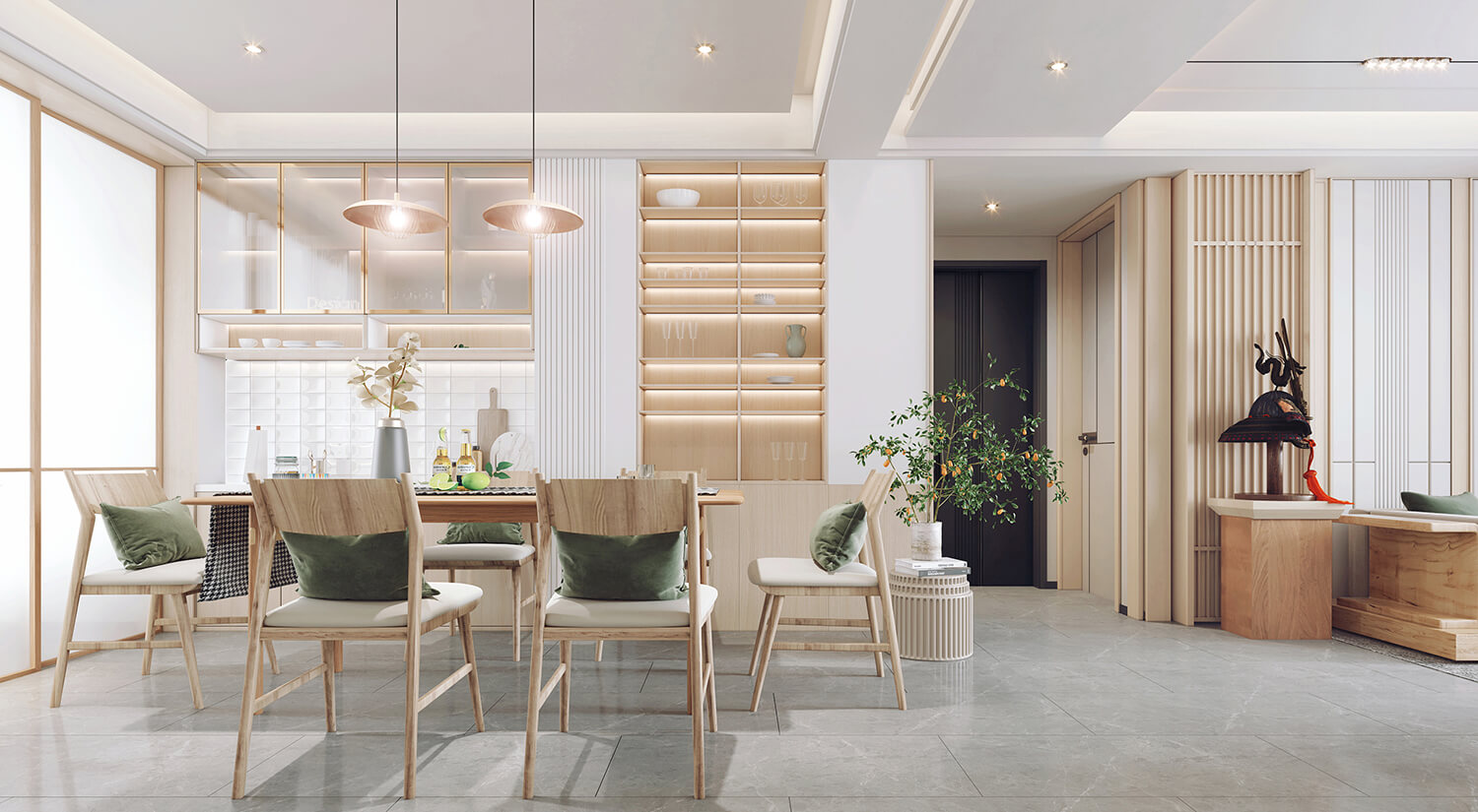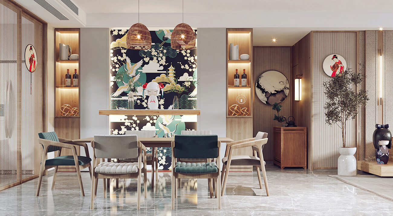 日式室內(nèi)設(shè)計(jì)也注重利用空間的高度和深度。天花板常常被設(shè)計(jì)為極高的,以營造一種開放和自由的氛圍。